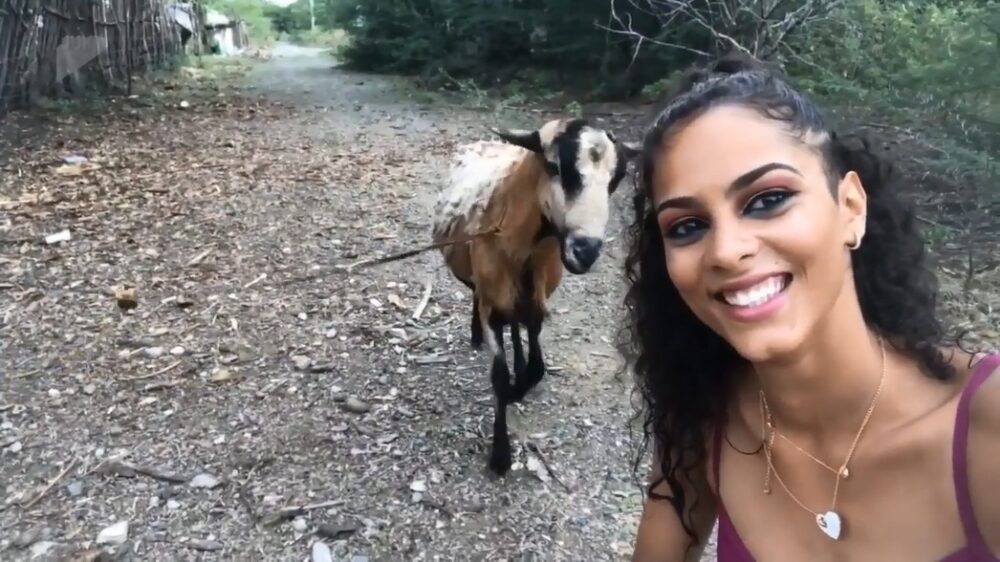 Geit laat duidelijk merken dat hij geen zin heeft in een selfie
