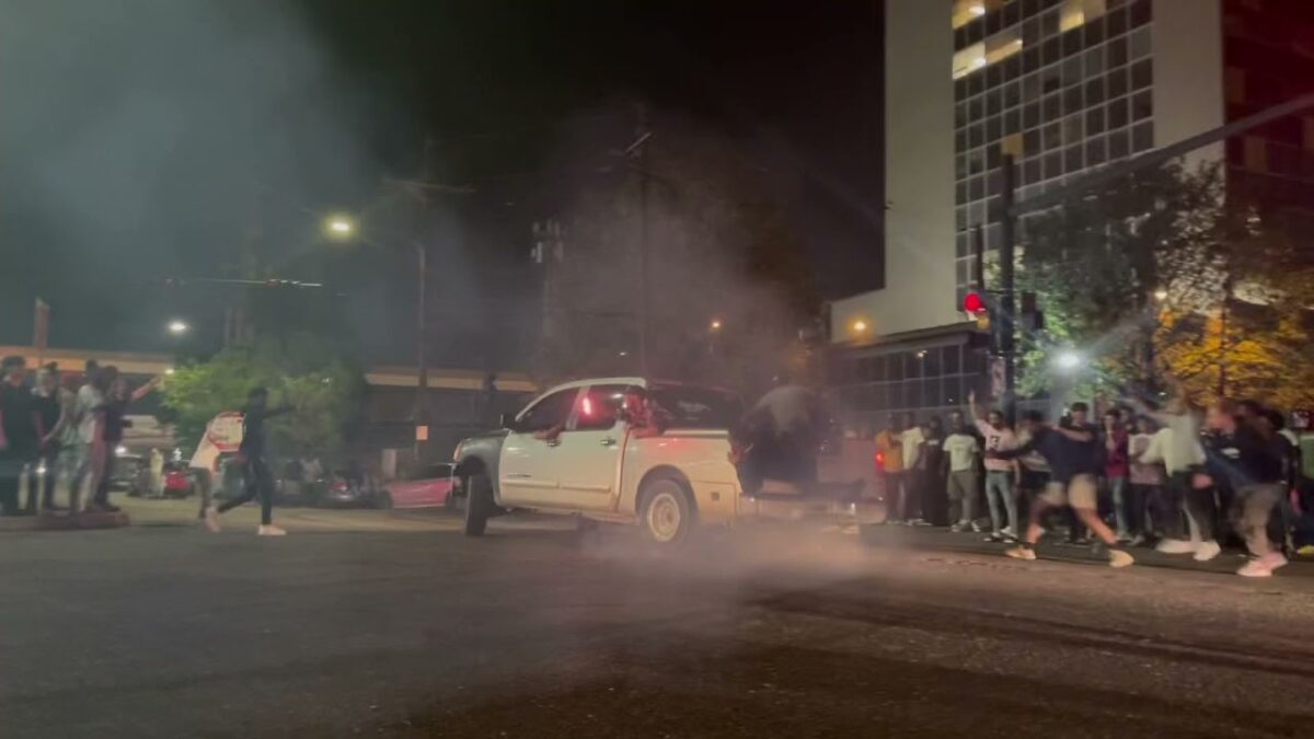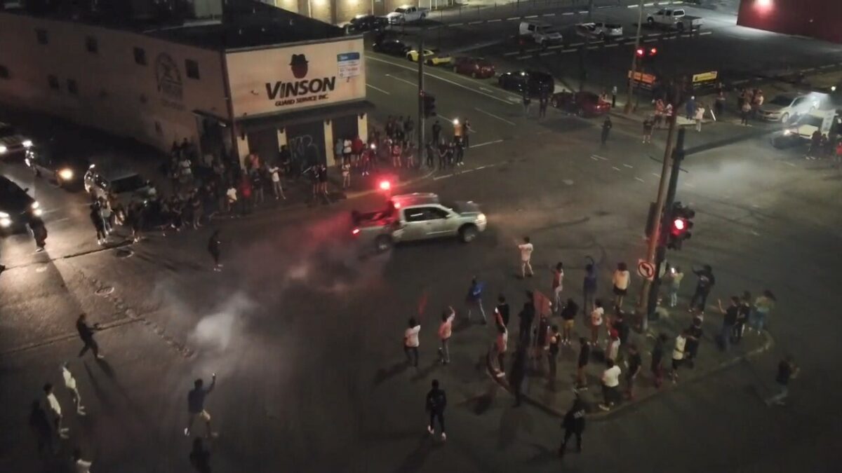 Kerel wordt tijdens het donuts draaien uit een pickup gebonjourd