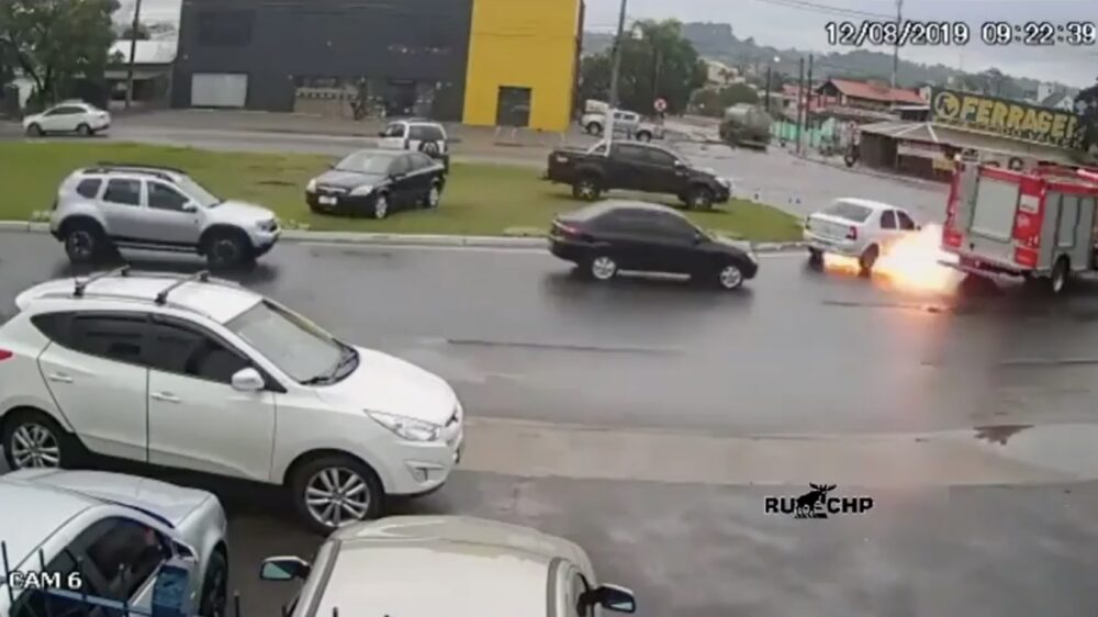 Kak, mijn auto vliegt spontaan in de fik... Snel, bel de brandweer! Rustig maar mevrouwtje, het is al geblust.