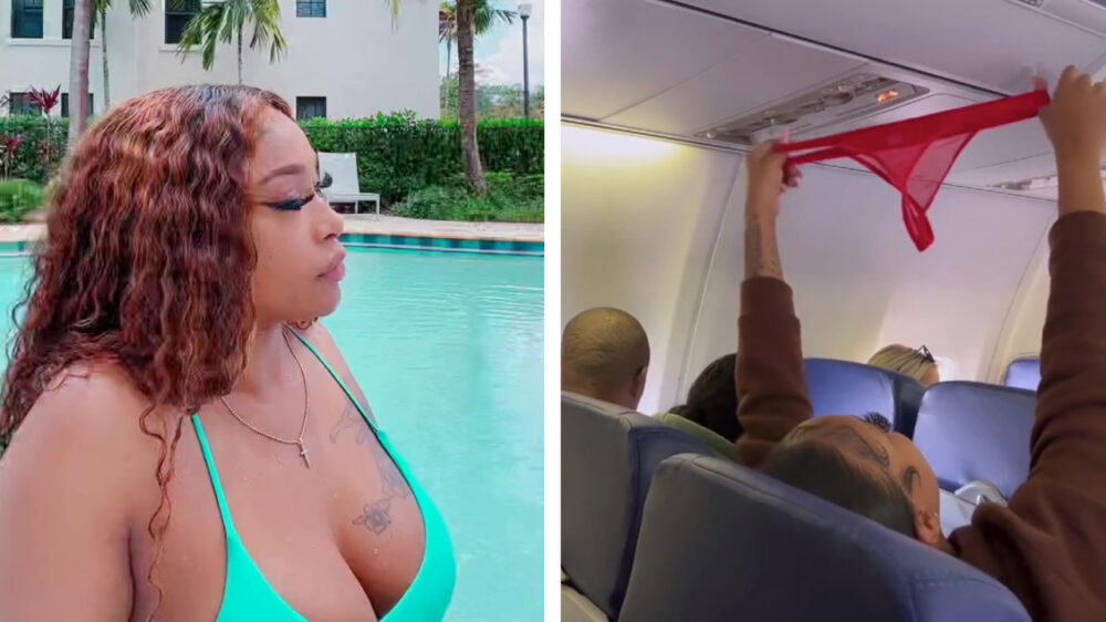 Zucht: OnlyFans-model zoekt aandacht en droogt haar string tijdens een vlucht