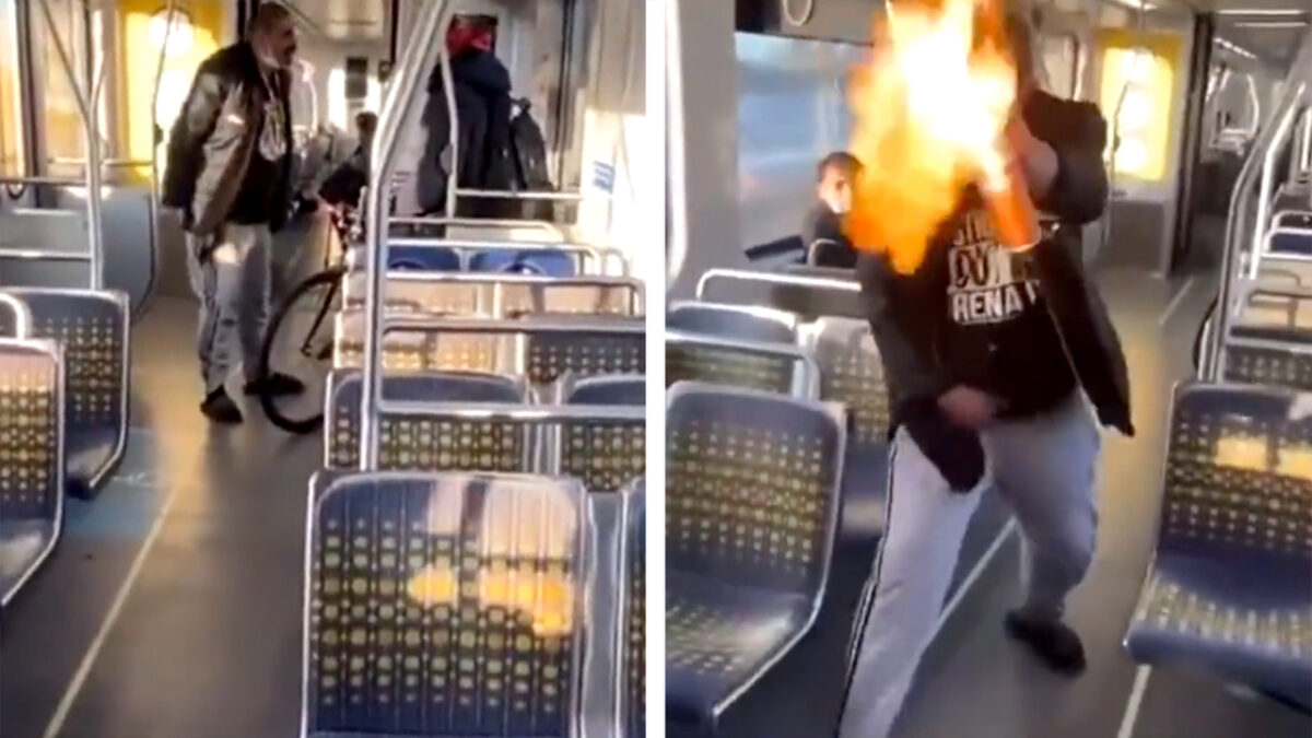 Licht ontvlambare idioot gaat met 'vlammenwerper' achter passagiers aan