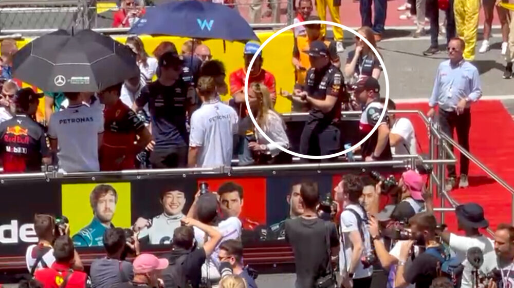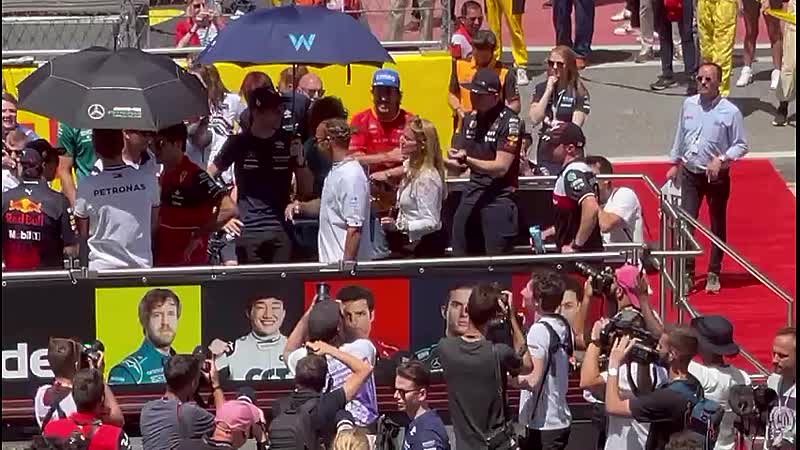 Geen idee welk verhaal Max Verstappen hier aan het vertellen is, maar Lewis Hamilton die toevallig net op dat moment achteromkijkt wordt dankzij deze perfecte timing op een dubbele, niet aan hem gerichte middelvinger getrakteerd. 😅