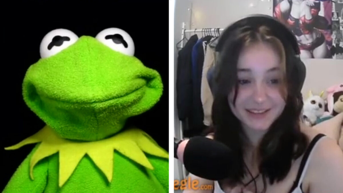 Vunzige Kermit showt zijn komkommer weer eens op Omegle