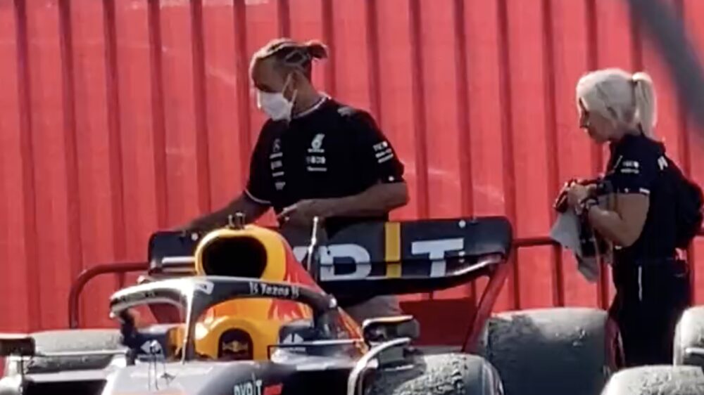 Weet je nog dat Max Verstappen 50.000 euro mocht aftikken omdat 'ie na afloop van de Grand Prix van Brazilië de vleugel van Lewis Hamilton aanraakte? De zogenaamde parc fermé-regels van de FIA dus. Nu gaat er een foto rond waarop te zien zou zijn dat Lewis Hamilton na afloop van de Grand Prix in Barcelona aan de auto van Sergio Pérez zou zitten.