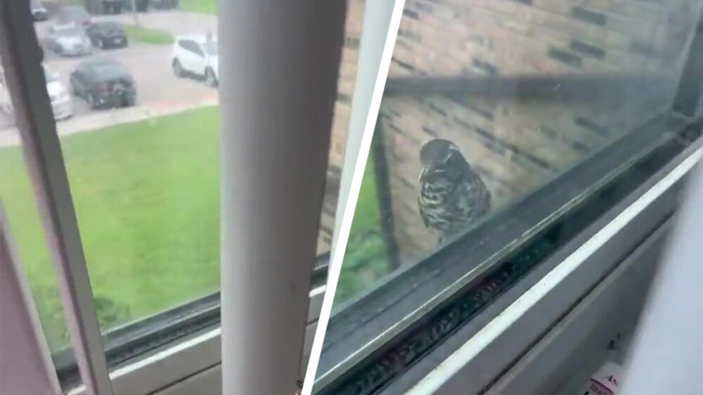 Vrouw vindt een schattig vogeltje op d'r vensterbank maar haar vreugde was van korte duur