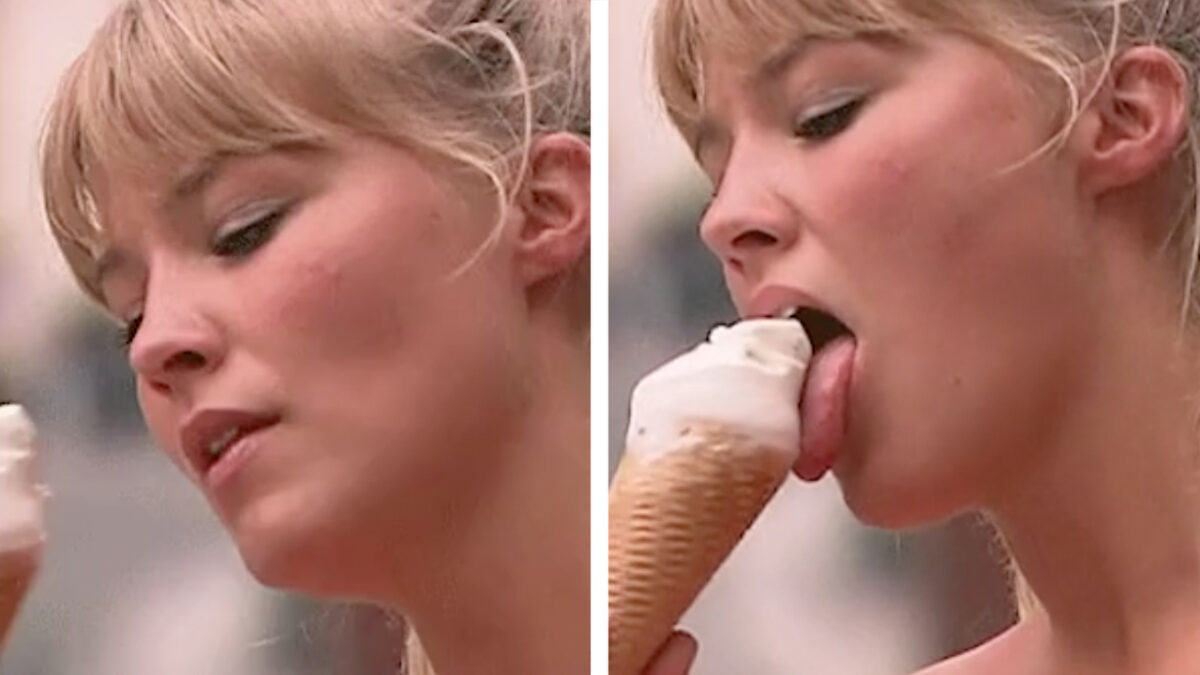 Geraldine Kemper die meer dan 4 minuten aan een ijsje likt, omdat het kan