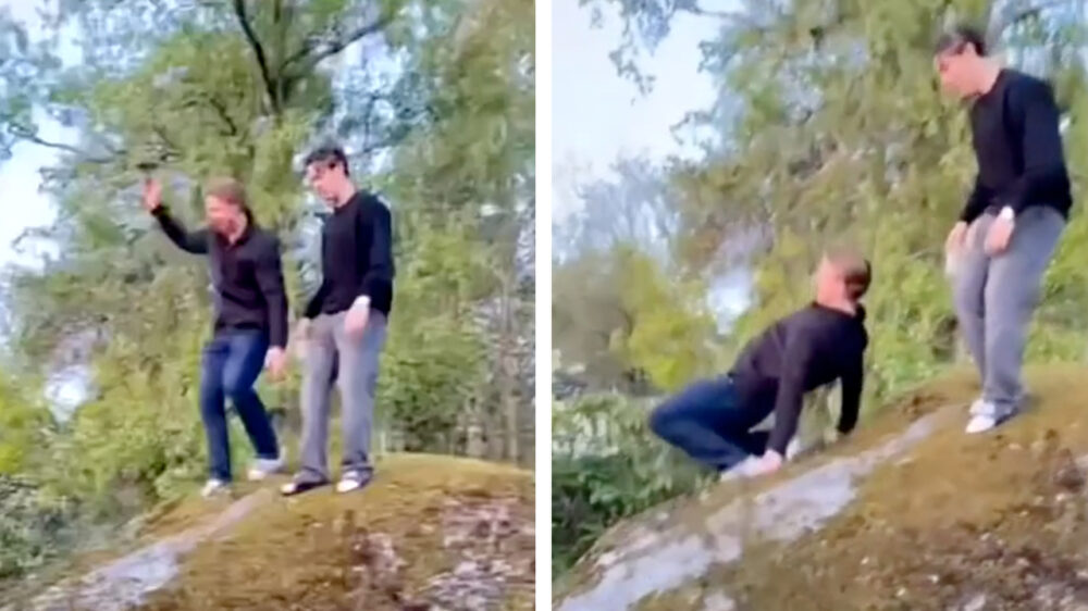 Pas op: gladde heuveltje met sneeuw is behoorlijk glad Fails