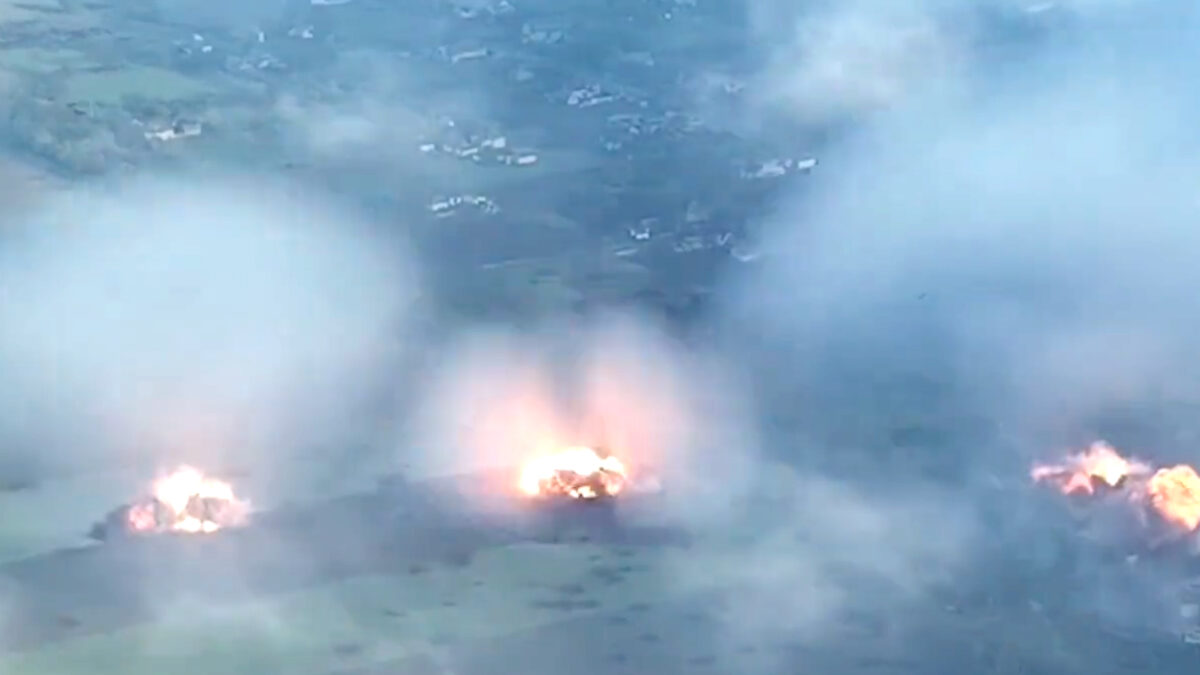 Het Oekraïense ministerie van Defensie heeft een video op Twitter geplaatst waarop te zien is dat er in de regio Donetsk door het Russische leger vermoedelijk een aanval met vacuümbommen gedaan is.