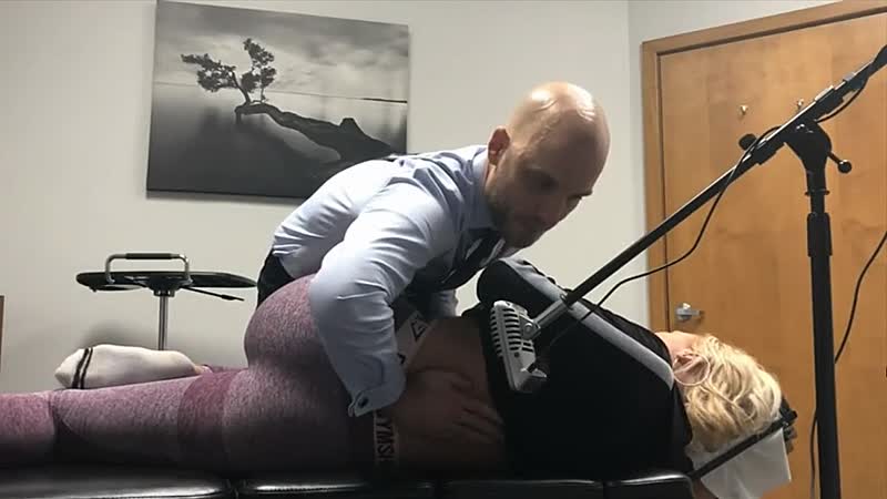 Deze blondine is misschien net iets té ontspannen bij de chiropractor