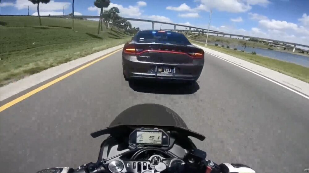 Ome agent trakteert motorrijder op een remtest die er VOL bovenop knalt
