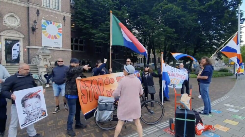 De extreemrechtse actiegroep Voorpost voert op Afrikadag actie bij het Tropeninstituut in Amsterdam waar ze met prinsenvlaggen staan, beter bekend als de vlag van het apartheidsregime in Zuid-Afrika. Deze dame is daar duidelijk niet van gediend en gaat er in haar eentje op af.