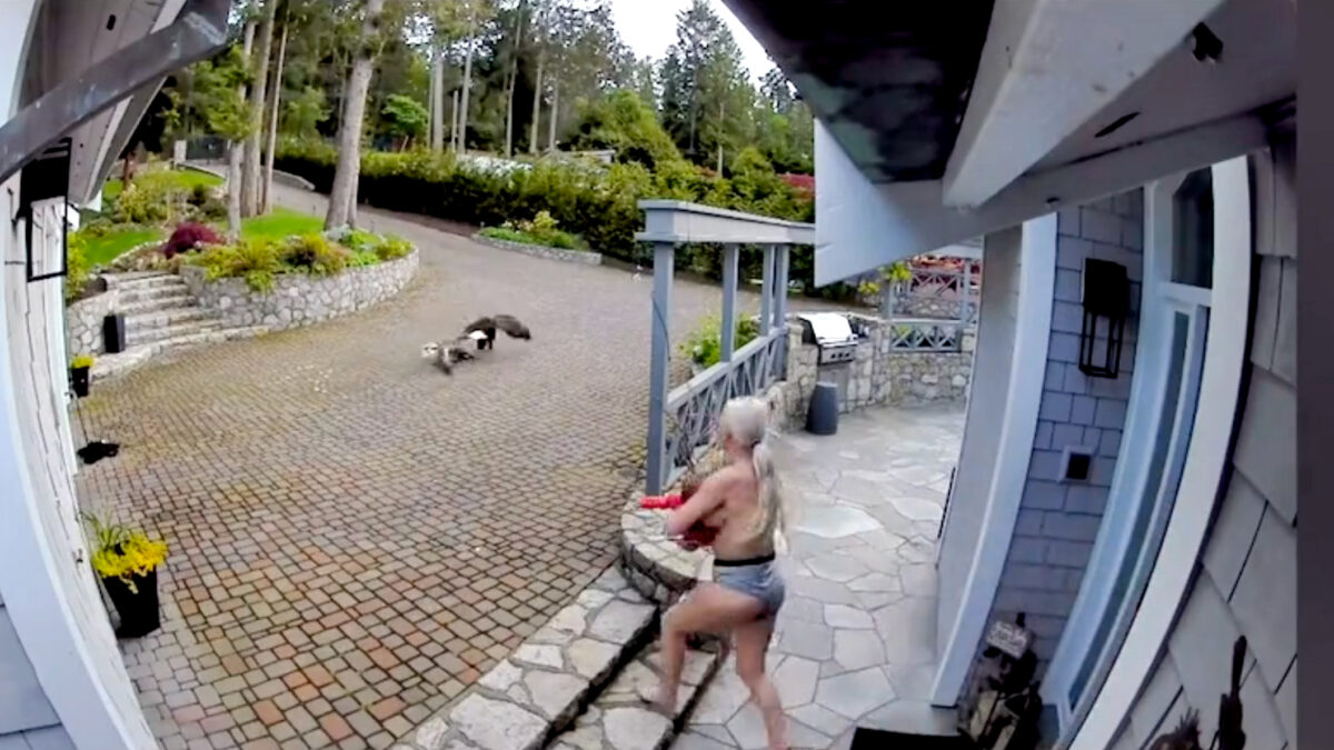 Vrouw jaagt bloeddorstige arend weg terwijl ze borstvoeding geeft