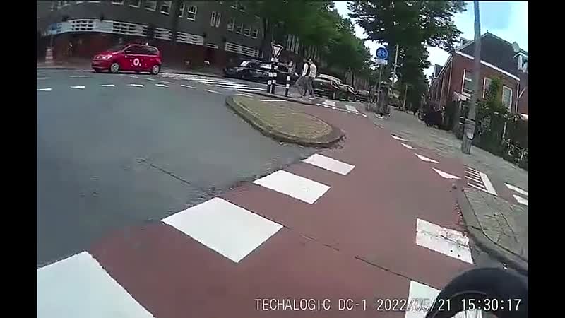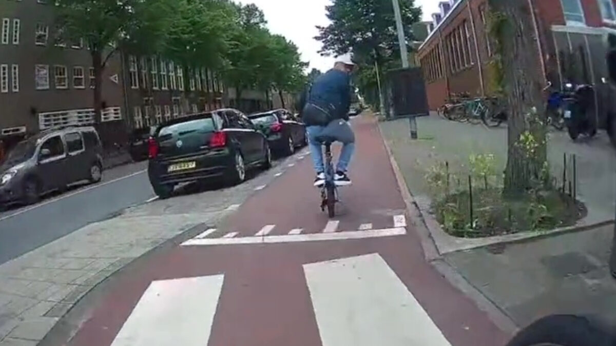 Als je met een koter op zo'n aanhang-fiets-unit rondrijdt dan is vaart maken na een verkeerslicht wel iets lastiger, je sleept toch een behoorlijke lading gewicht achter je aan. Dat duurde deze bestuurder van een elektrische scooter dan ook allemaal véél te lang en dus besloot 'ie rechts in te halen. Was de fietsende vader niet echt van gediend, maar gelukkig bleek moedertje Karma zich ook in Amsterdam te bevinden.