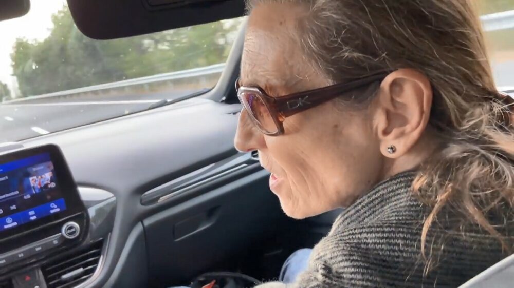 Vrouw behoorlijk pissig als d'r vent op topsnelheid over de Autobahn blijft rijden