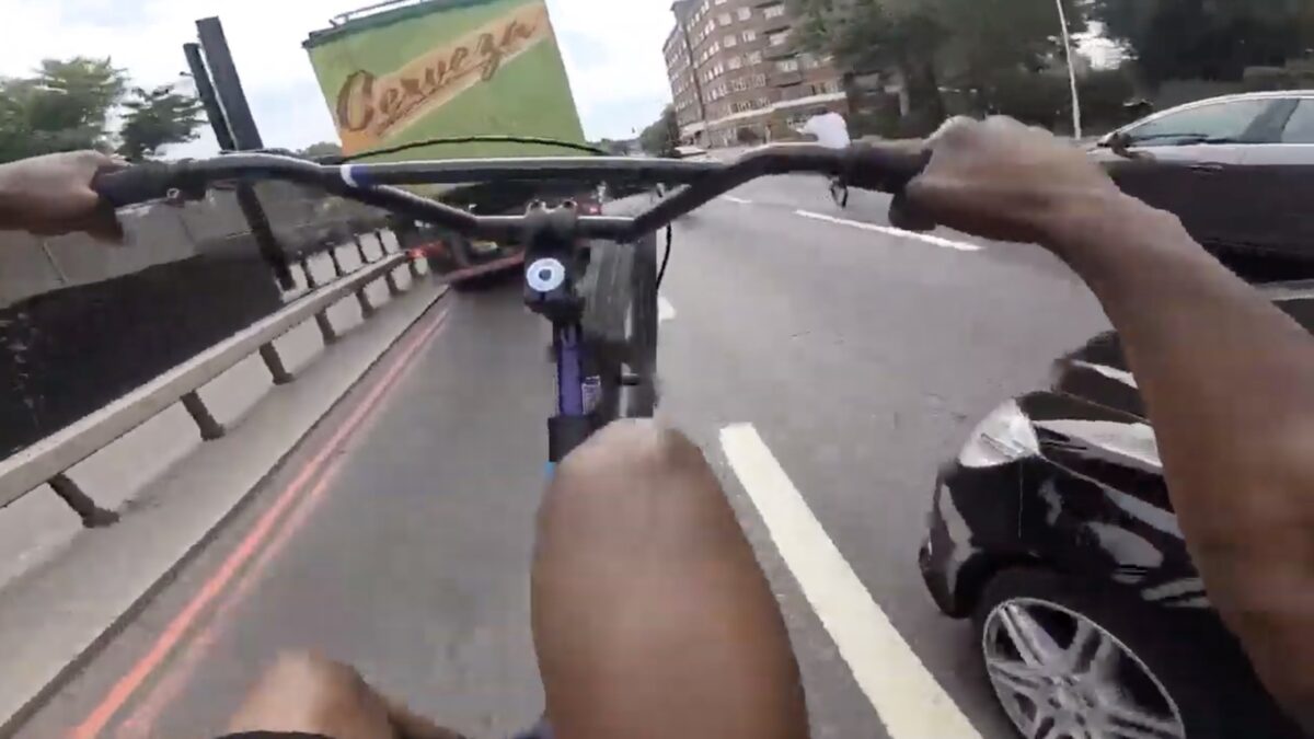 Wheelies door het verkeer maken, aangereden worden en boos zijn op de automobilist