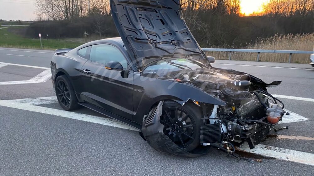 Supercharged straatracekneus rijdt zijn Ford Shelby GT350 in de prak