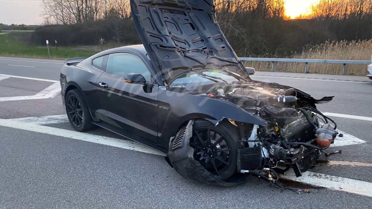 Supercharged straatracekneus rijdt zijn Ford Shelby GT350 in de prak