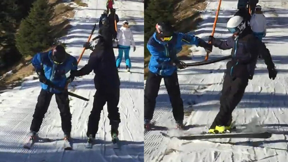 Achterstevoren van de skilift is misschien toch niet de veiligste manier