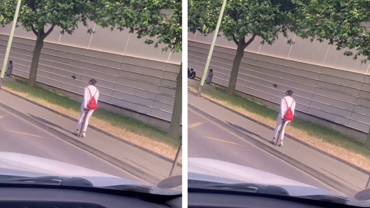 We weten niet precies wat er aan de hand is, of dat de wandelaar jeuk had of gewoon heel erg op dit paaltje gesteld was, maar het levert in elk geval bijzonder vreemde beelden op.