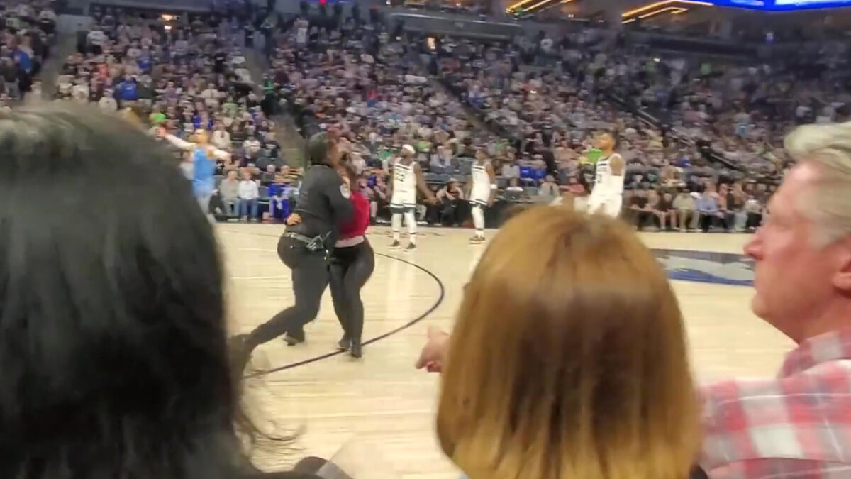 Het leek een heel goed idee, tijdens een wedstrijd van de Minnesota Timberwolves het veld opstormen om te protesteren voor dierenrechten, maar dankzij een behoorlijk scherpe securitymedewerker duurde die poging niet zo lang. De dame in kwestie vond het daarbij nodig om over clubeigenaar Glen Taylor en zijn vrouw heen te springen, die nog wel dappere pogingen deden om het filmen tegen te gaan. Helaas.
