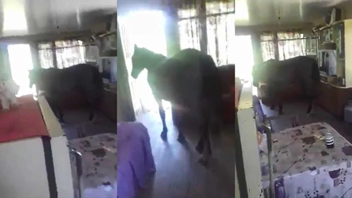 Vrouw komt erachter dat een paard niet ideaal is voor in de woonkamer