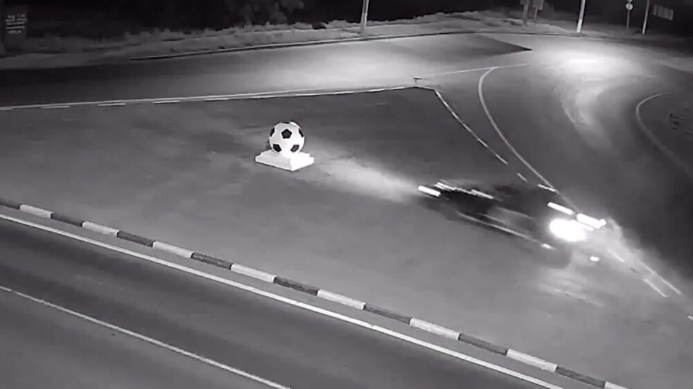 Rus kon de verleiding niet weerstaan om een extreem grote voetbal te rammen