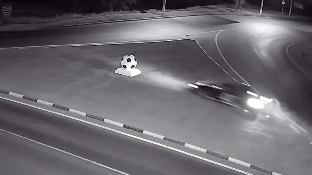 Rus kon de verleiding niet weerstaan om een extreem grote voetbal te rammen Bizar