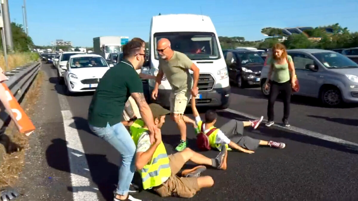 Italianen hebben geen zin in klimaatactivisten en sleuren ze de weg af