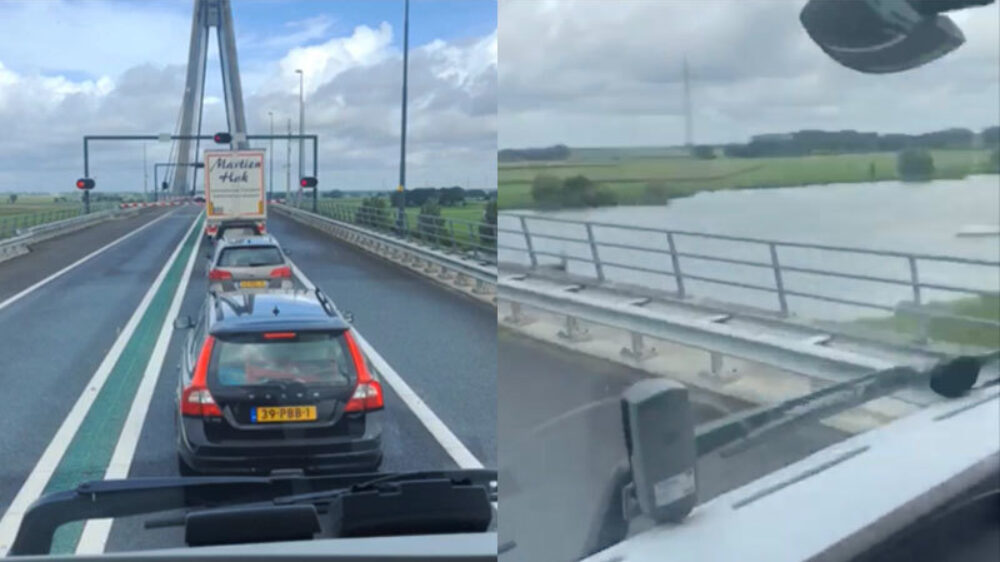 Tamelijk geïrriteerde man moet dankzij reusachtig schip wachten bij ophaalbrug