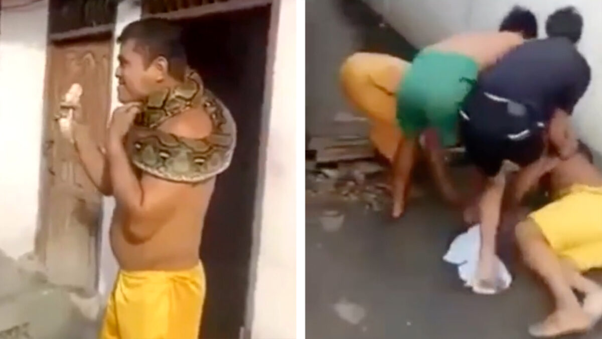 We zagen eerder vandaag dat het voor vrouwen niet aan te raden is om een stekelvarken als huisdier te houden, maar dat geldt natuurlijk ook voor mannen en pythons. Daar is deze flip nu ook achter...