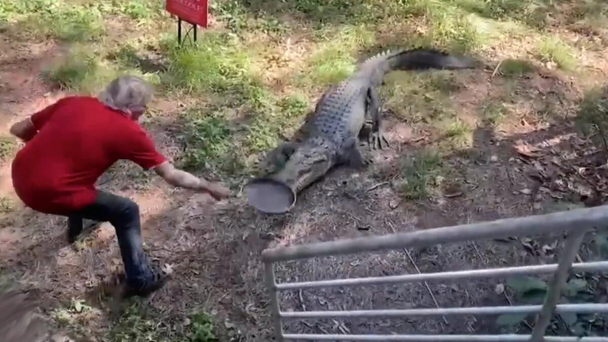 Aussie-eindbaas jaagt agressieve krokodil weg met een koekenpan