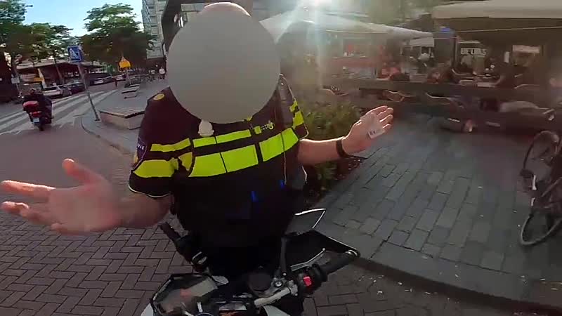 Ergens een wheelie poppen als ome agent in de buurt is komt je meestal op een dure bekeuring te staan, maar gelukkig had deze agent toevallig een warme maaltijd in z'n koffertje zitten dus lagen zijn prioriteiten ergens anders.