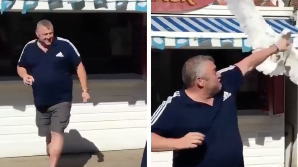 Meeuw die vers ijsje wil jatten krijgt meteen een directe linkse op z'n snavel