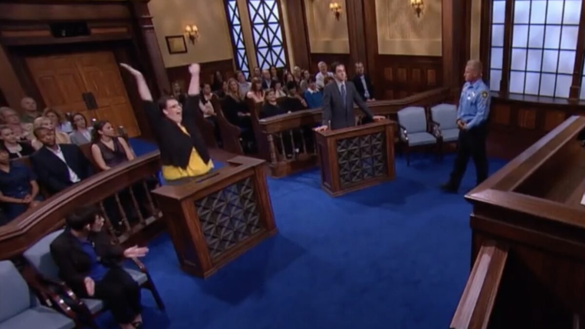TV-rechter gaat los op vrouw na juichen voor de rechtbank