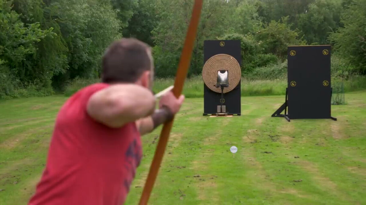Een compleet metalen harnas, dat zou toch makkelijk moeten beschermen tegen vijanden met pijl en boog, toch? Tijd voor de test!