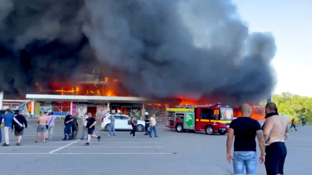 Winkelcentrum in Oekraïne in de as gelegd door aanval met Russische raketten