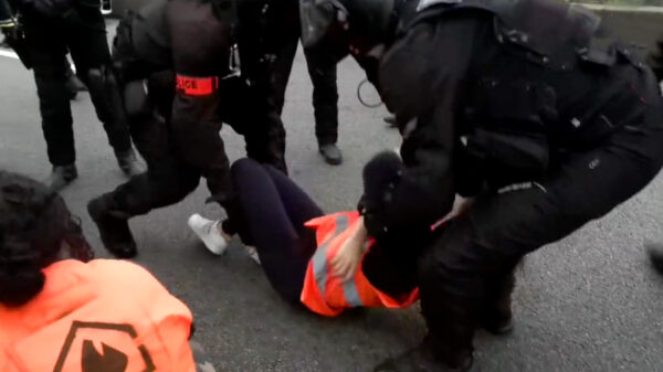 Agent heeft geen enkele medelijden met klimaatactivist die zichzelf vastlijmde