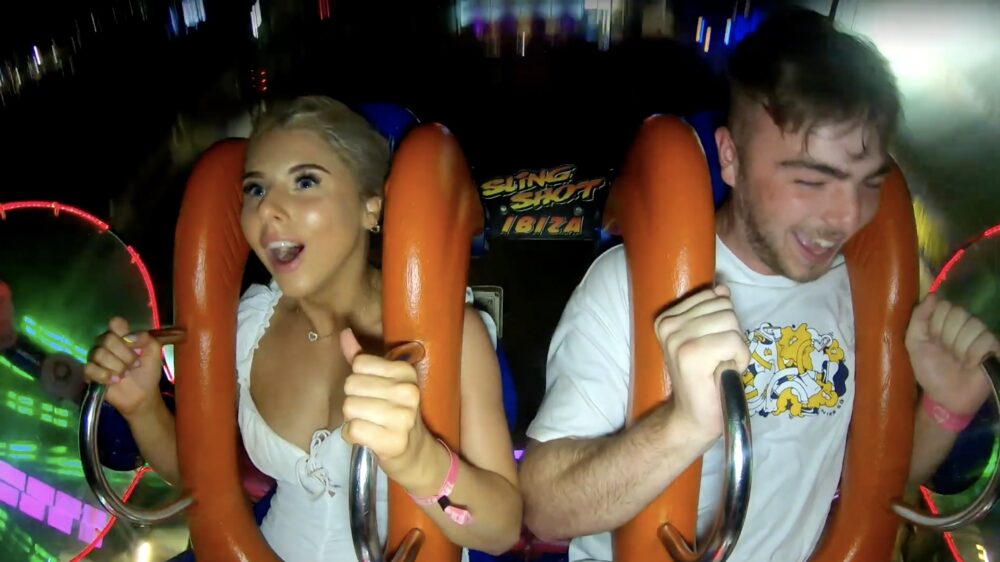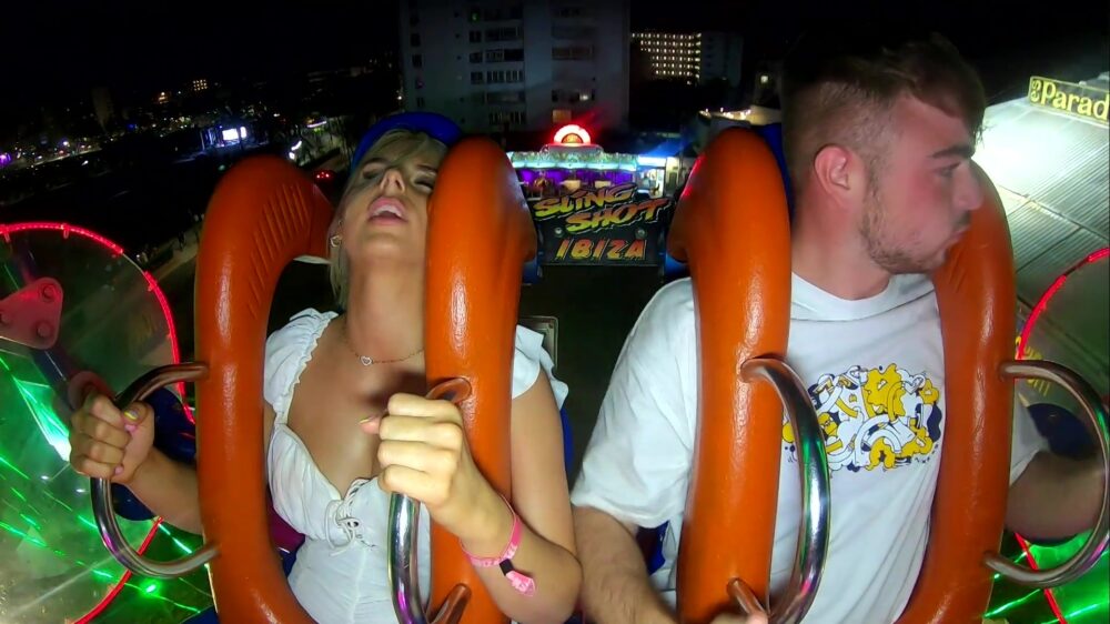 Blondie gaat wel heel erg lekker tijdens een wild ritje in de slingshot