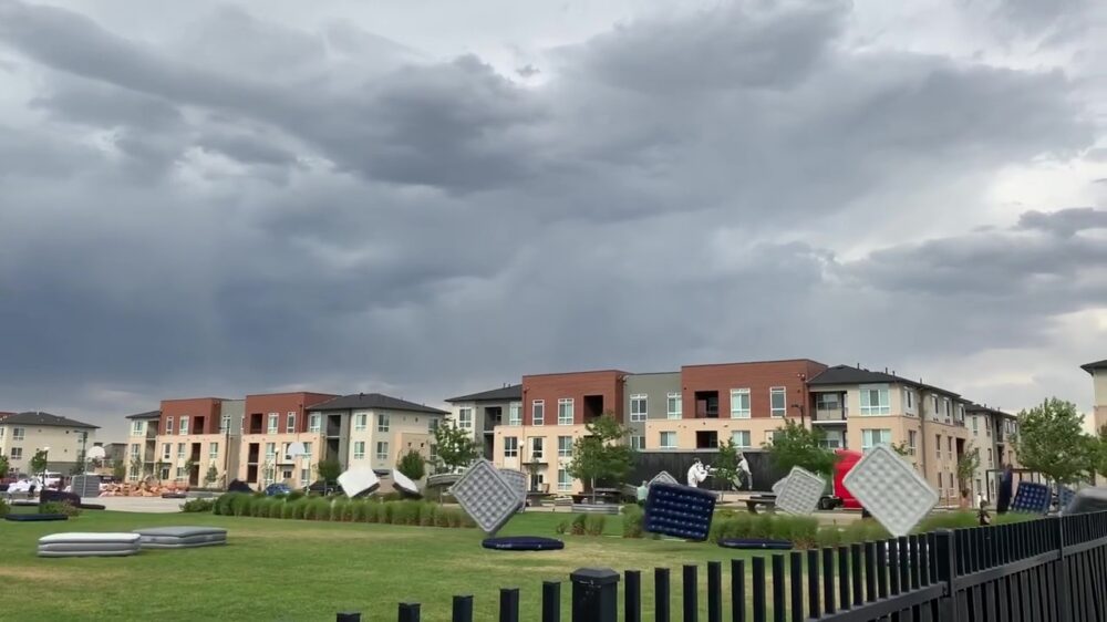 Waarom een enorm luchtbed tijdens een storm niet zo'n veilige plek is