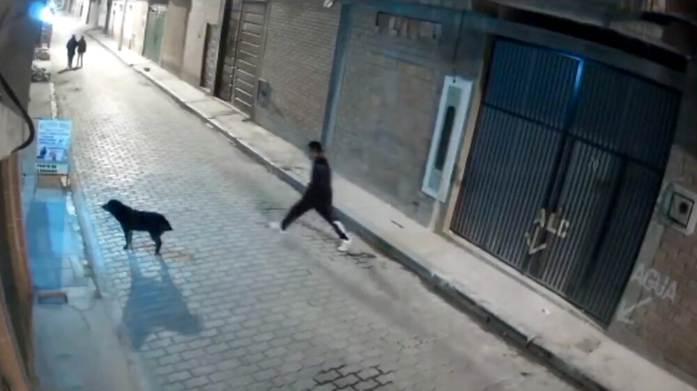 Je moet wel een extreem triest figuur zijn als je uit het niets een (straat)hond een onverwachtse trap wil geven. Gelukkig is moedertje #karma het met ons eens.