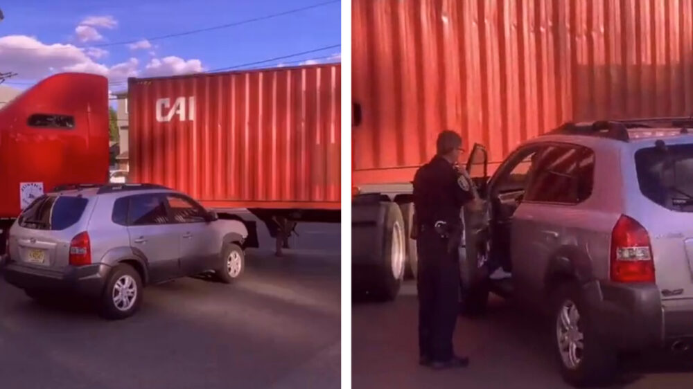 Karen weigert achteruit te gaan en zet vrachtwagen klem op straat