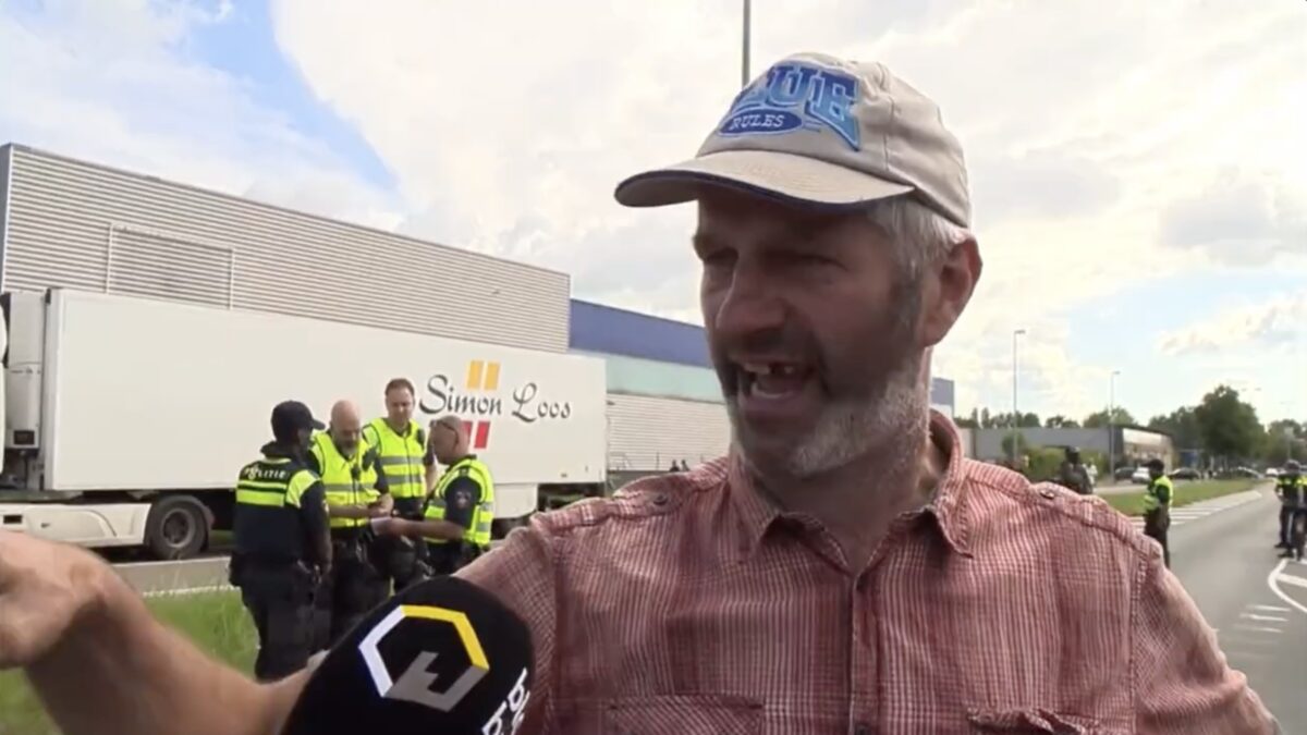 Boer Jan staat op dit moment bij het distributiecentrum van Albert Heijn in Zaandam en hij lucht zijn hart bij een verslaggever.