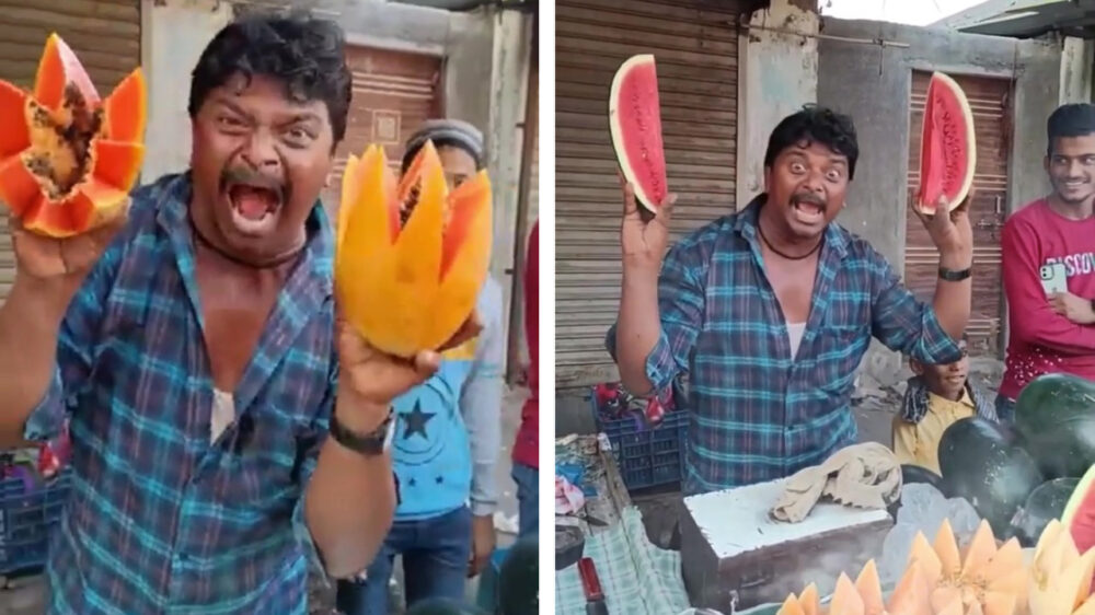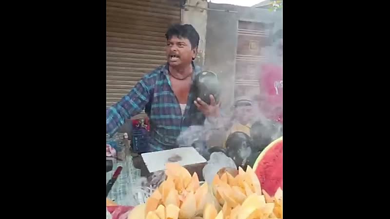 Iemand enig idee wat deze fruithandelaar geslikt heeft?
