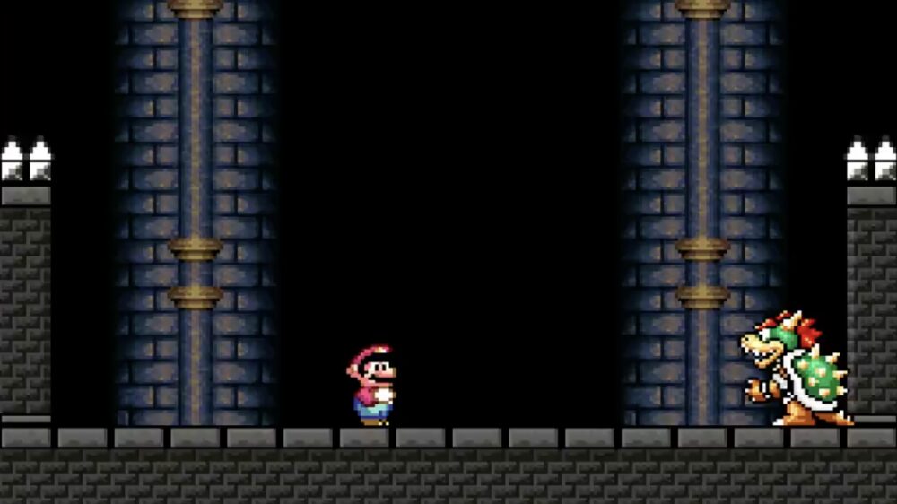 Een passage van de eindbaas die je in de hardcore-modus van het spel Super Mario World moet verslaan. Hiervoor zouden ze je als beloning een echte prinses moeten geven!