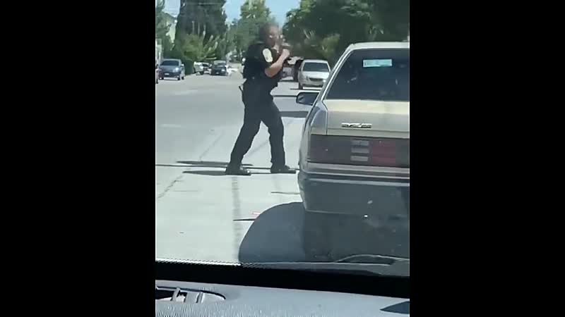 Al eens een politieagent een verkeersfittie met de vuisten uit zien vechten?