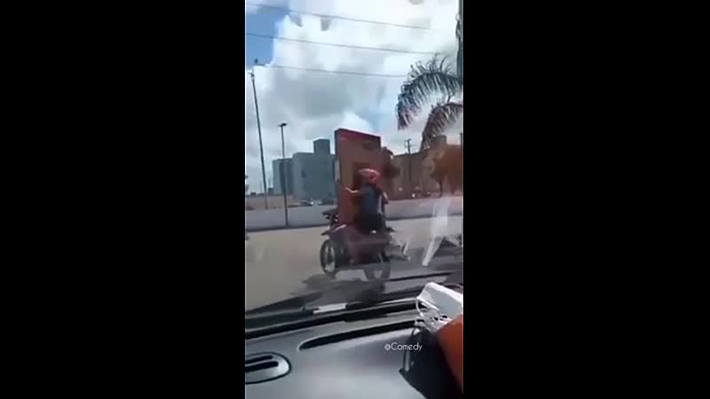 Net zoals jij en ik ziet ook de filmer al van mijlenver aankomen dat dit niet lang goed kan gaan. Ze blijft hem wel netjes vasthouden!