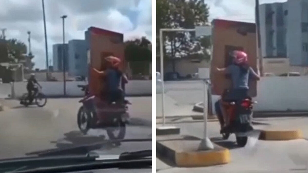 Vriendin mag achterop de brommer om de nieuwe tv vast te houden Verkeer