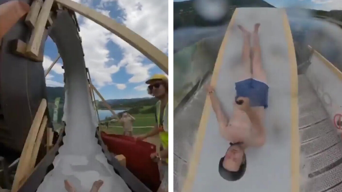 Een stukkie zeil met groene zeep insmeren en daar overheen glijden, dat kan iedereen wel. Deze slip 'n slide 2.0 heeft daarentegen een heuse looping, én een dikke jump aan het einde. Bruut!