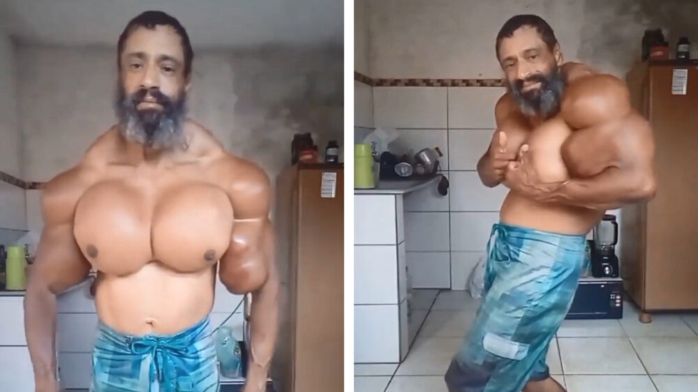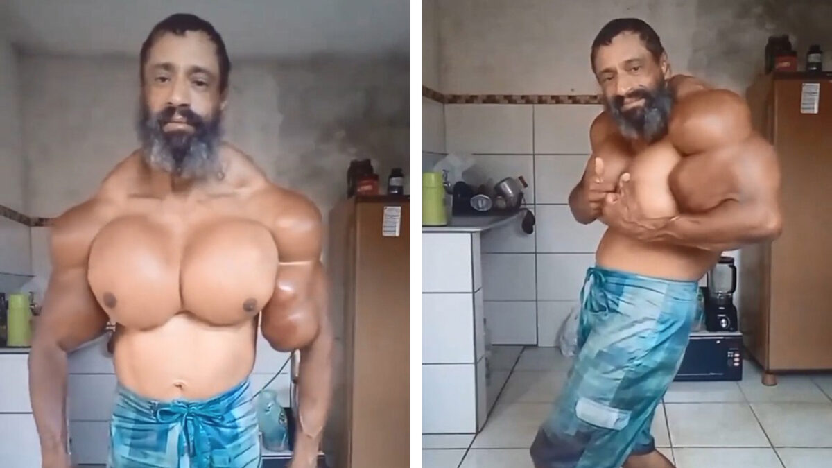 De Braziliaanse bodybuilder Valdir Segato heeft niet stilgezeten want hij heeft weer keihard getraind wat synthol-injecties in zijn lichaam gespoten en het resultaat mag gezien worden hoor. Ola, check mijn guns gek!