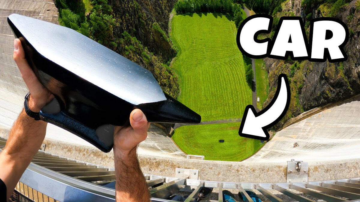 Wat gebeurt er als je van 165 meter hoogte een aambeeld op een auto pleurt?